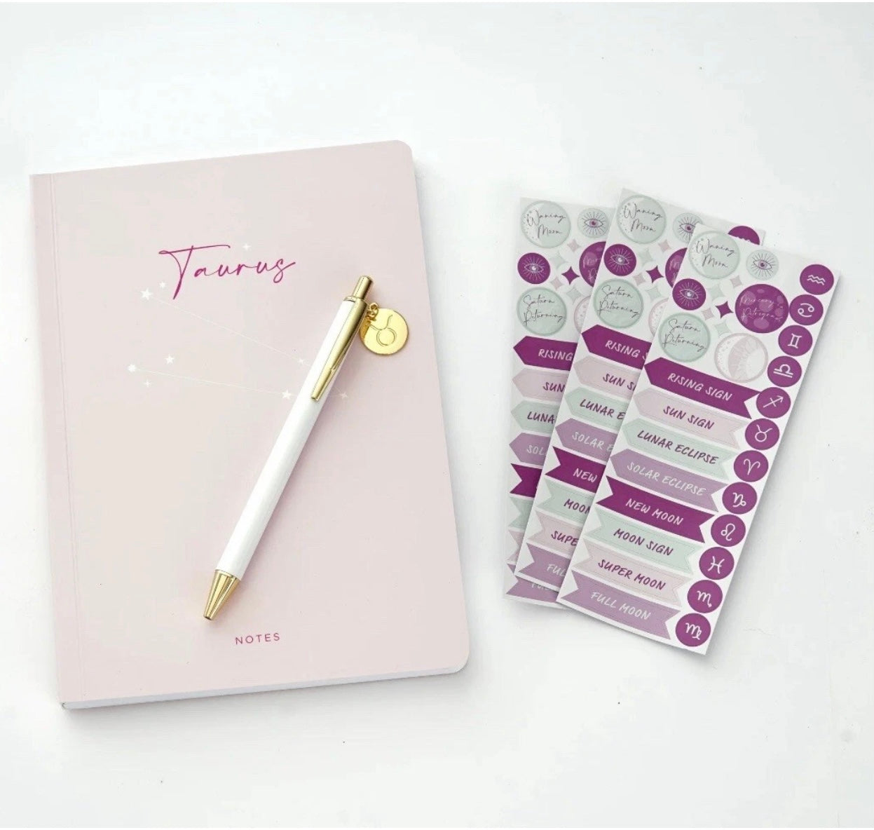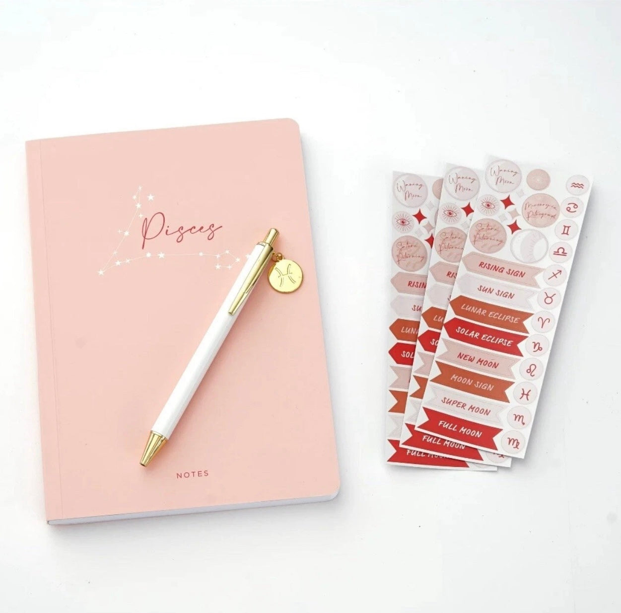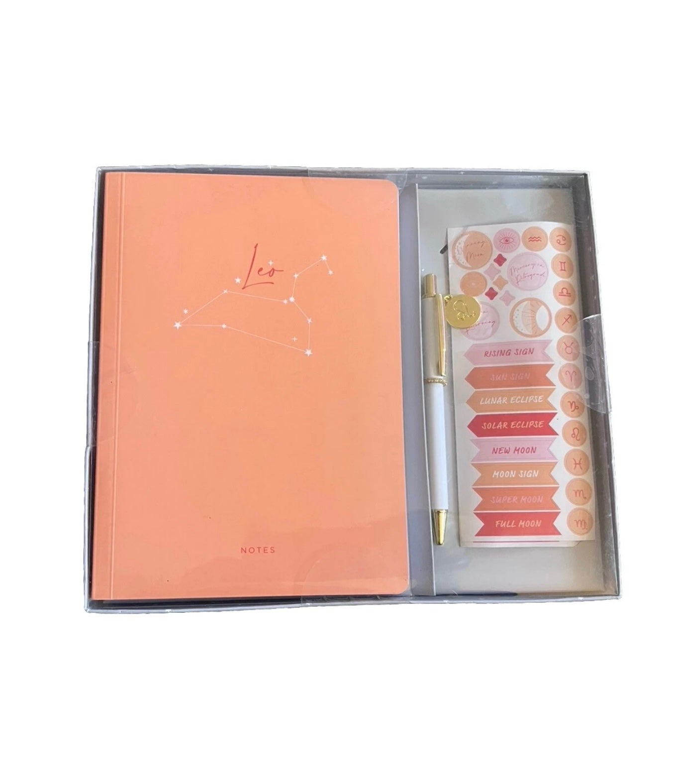 Celebrate the adventurous spirit of your favorite Zodiac with this thoughtfully curated journal set. Featuring a tactile textured cover and paired with an engraved zodiac charm pen and stickers, it's a meaningful gift that speaks to their cosmic identity. The compact 5.75" x 8" format fits seamlessly into any bag or purse, making it ideal for capturing thoughts throughout your day or documenting experiences while traveling. Built with flexible binding and a resilient cover, this journal withstands daily use without compromising its integrity. Inside, 96 sheets of lined paper provide ample space for journaling, planning, or creative expression. A complete, sophisticated gift for the zodiac in your life.