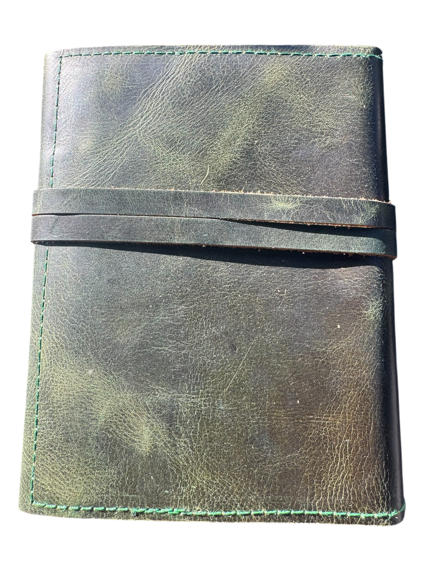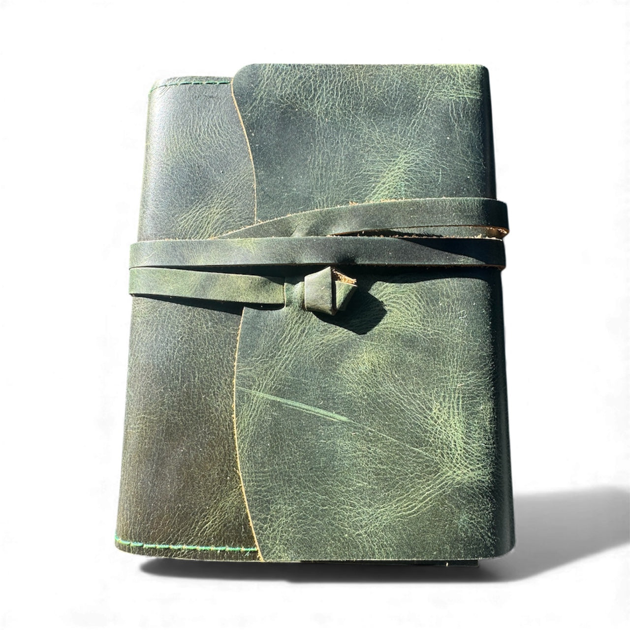 Each journal is handcrafted from naturally tanned, distressed leather treated with specialty oils, ensuring every piece is uniquely colored and textured. A premium ballpoint pen rests in the integrated leather holder, ready for seamless writing across the pages. When you've filled your journal with thoughts and memories, simply replace the refillable paper insert to continue your writing journey. This is more than a journal—it's a durable companion designed to evolve with your personal narrative. Size is 7x5. Paper is unlined. A pen is included.
